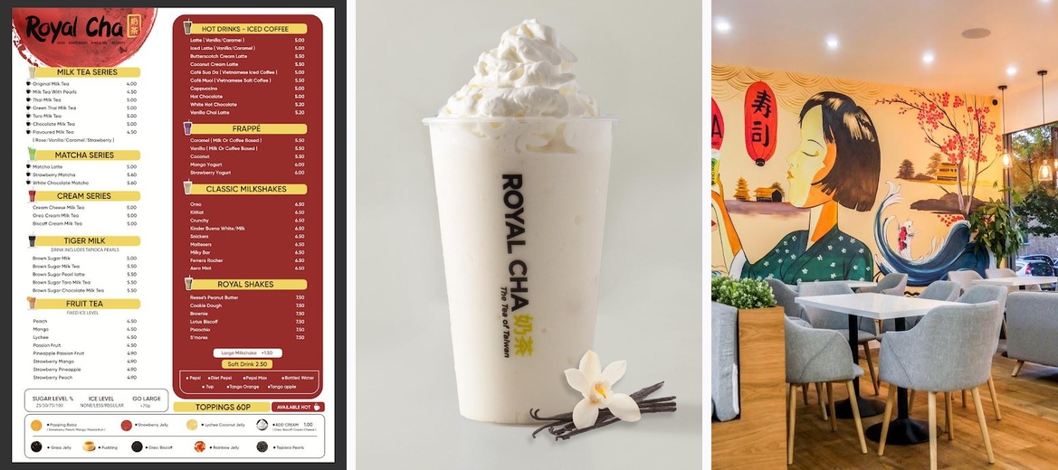 Welcome to Royal Cha, your go-to destination for an authentic taste of Taiwan right in the heart of Coventry. Enjoy a delightful selection of bubble tea, featuring rich flavors and customizable options. Pair your drinks with our exquisite sushi, bento boxes, and delectable desserts, crafted with the finest ingredients for an unforgettable dining experience. Whether you're looking for a quick bite, a family meal, or a cozy solo dining atmosphere, our casual and trendy café caters to all, including halal and vegan options. Visit us at 21A Cross Cheaping, and savor the perfect blend of taste and culture!Customers rave about the generous portion sizes at Royal Cha. The Royal Prawn and Royal Chicken dishes receive frequent praise for their taste and presentation. Bubble tea lovers applaud the extensive selection, particularly the brown sugar milk and taro milk tea, drawing patrons back time and time again. The sushi rolls, particularly the Spider and California rolls, never disappoint. The team’s attentive service enhances the experience, where even little touches like complimentary water make a difference. Plus, the clean and cozy atmosphere allows for relaxed dining, whether you're studying, catching up with friends, or simply soaking up the vibrant vibe.