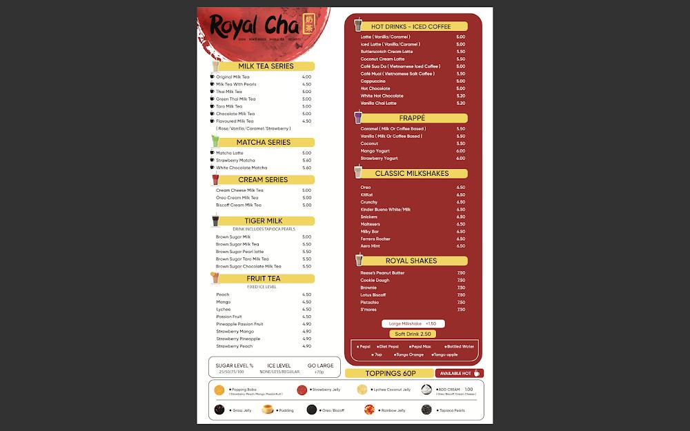 Royal Cha is located at 21A Cross Cheaping in Coventry CV1 1HF, a prime spot for locals and tourists alike. This bustling area is easily reachable by public transport, and paid parking is available nearby, making it convenient for quick visits. The community around Royal Cha thrives on a shared love for good food and unique dining experiences. Its casual and trendy atmosphere draws in families, friends, university students, and anyone looking to enjoy a pleasant meal. The welcoming staff creates an enjoyable environment, ensuring visitors feel valued while they indulge in flavorful dishes. Royal Cha’s opening hours are generous, catering to lunch and dinner crowds, so there's always a chance to stop by after a long day or during a quick lunch break.